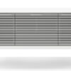 Where form and function align, this full-featured and low-profile design pairs remote and audio-friendly louvered doors with an elegant console style base.