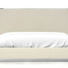 Channel tufted ivory leather framed in onyx gloss lacquer creates a luxurious backdrop for a restful night sleep. Beautifully designed to coordinate with the other pieces of the collection, this modern bed is the embodiment of craftsmanship.