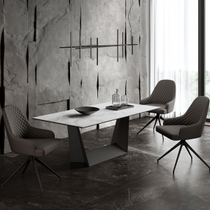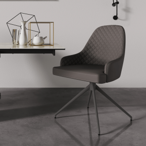 A striking armchair with feminine grace, Emily has it all – sloping armrests to provide security and comfort, a high seat back that offers stability and a refined elegance, and a long-legged swivel base that allows for ease of movement. Plus, Emily’s all-over upholstery and stylish diamond tufting tells a story of dramatic sophistication.