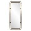 Gerundio is the new mirror of big dimensions with an explicit reference made to the "gerund mood" of the Italian language, the expression of contemporaneity. The large reflecting surface produces a three dimensional effect of the environment, that thus gains a greater depth. The surface and frame, slightly parted, split the reflecting image that, in a fine intellectual play, recovers itself only in the observer's mind.