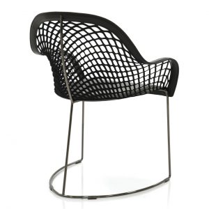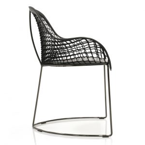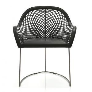 The Guapa line of chairs feature the use of the network of leather. The charm of Guapa spreads fully under the sun's rays, casting shadows to the surroundings. A great addition to any dining or office space.