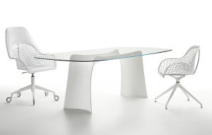 The Guapa line of chairs feature the use of the network of leather. The charm of Guapa spreads fully under the sun's rays, casting shadows to the surroundings. A great addition to office space.