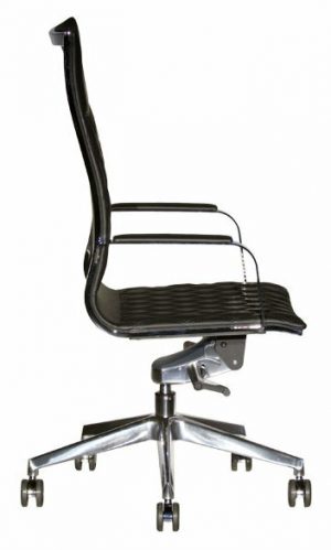Diamond tufting and a high seat back create a sophisticated display on this swivel office chair, especially when combined with supple black leather and a chrome frame for a seat that will have you feeling like a CEO.