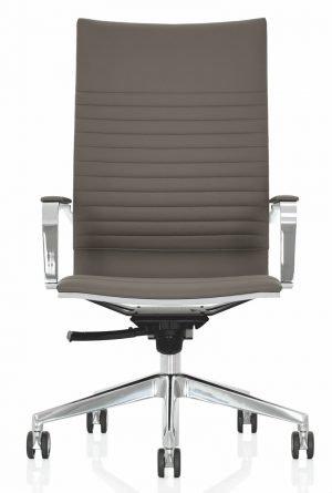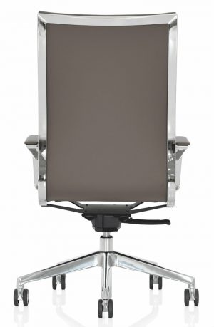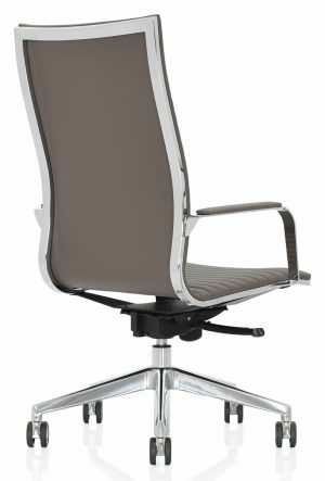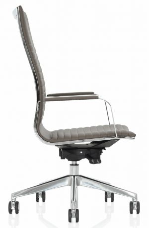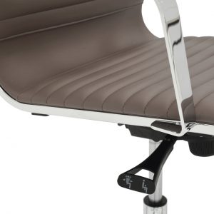 Chanel tufting and a high seat back create a sophisticated display on this swivel office chair, especially when combined with a soft brown ecopelle and a chrome frame for a seat that will have you feeling like a CEO.