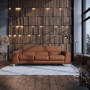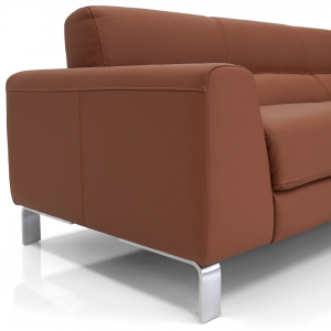 The Lucano Sofa is the definition of an essential living piece. Crafted of supple cognac leather and resting on elegantly brushed aluminum legs, Lucano creates a true statement while also fitting in perfectly with its surroundings. Its sleek, low-profile and thick armrests offer ultra-modern appeal while its stitching creates an artful detailing that cannot be ignored.