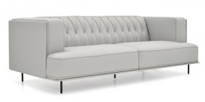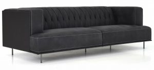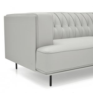 Soft, velvety leather that exudes modern sophistication, this modern loveseat is a one-of-a-kind classic from its clean lines and delicate legs to its vertical diamond tufting.