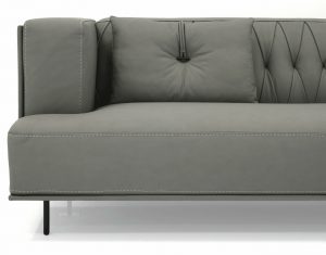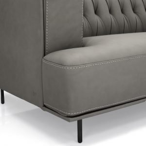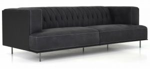 Soft, velvety leather that exudes modern sophistication, this modern sofa is a one-of-a-kind classic from its clean lines and delicate legs to its vertical diamond tufting.