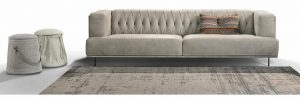 Handcrafted in Italy and offering a natural, opaque look with a soft, velvety touch, the McQueen Sofa exudes modern sophistication, from its clean lines and delicate legs to its vertical diamond tufting.
