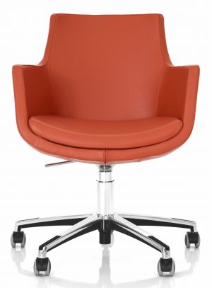 A modern take on a classic design, the Meeting 2 Arm Chair puts a fun twist on seating with its rounded appearance and vibrant orange color.