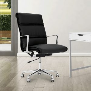 Enveloped in rich and supple leather, the Mercury Hi-Back Executive Chair will have you feeling like a CEO with its 360-degree swivel and adjustable height and tilt options.