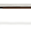 This grey gloss finished cedar tabletop with black glass top insert is sure to be the center of attention of any dining room with its statement black chrome double pedestal base and contrasting design.