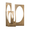 Oscar offers a pairing of differences: rectangular and rounded shapes, smooth and textured materials, and dark and light colors. Whether placed on a tabletop, desk, or bookshelf, the Oscar Sculpture will certainly create a dramatic statement with its tall base of bronze steel and top accent of one-of-a-kind Travertine