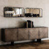 Like its name, the Outline Sideboard follows the lines formed by each of the different materials featured: walnut veneered frame with a matte marble ceramic inset top on bronze metal base.