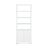 A narrow single ladder shelf that makes excellent use of vertical space with sleek grey glass shelves for open storage and display, perfect for tight or limited spaces where extra storage is needed.